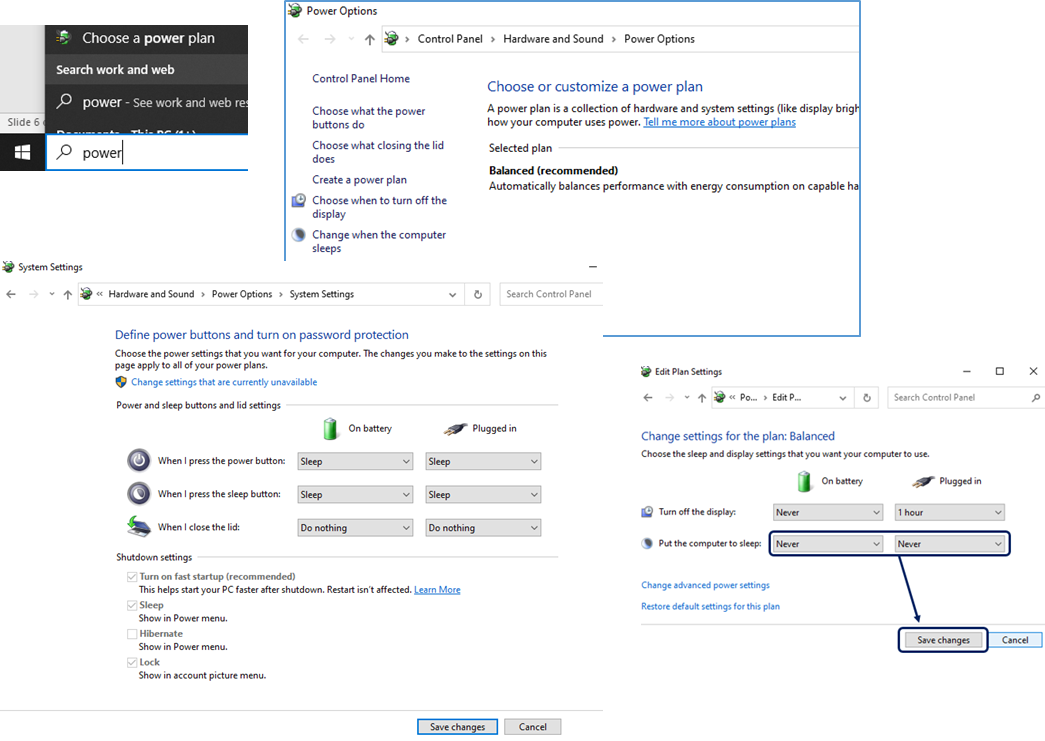 Power settings and sleep mode related adjustments can be made by users themselves.